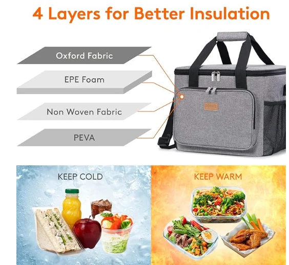 کیسه پیک نیک عایق ، کیسه ناهار از مواد عایق ساخته شده است که می تواند بیش از 5 ساعت غذا و نوشیدنی ها را خنک یا گرم نگه دارد. علاوه بر این ، آستر داخلی از فویل Peva درجه مواد غذایی ساخته شده است تا بتوانید غذای خود را مستقیماً بدون هیچ گونه نگرانی در کیسه قرار دهید. کف داخلی 6 میلی متر EPE از ظروف ، مواد غذایی و نوشیدنی شما محافظت می کند.