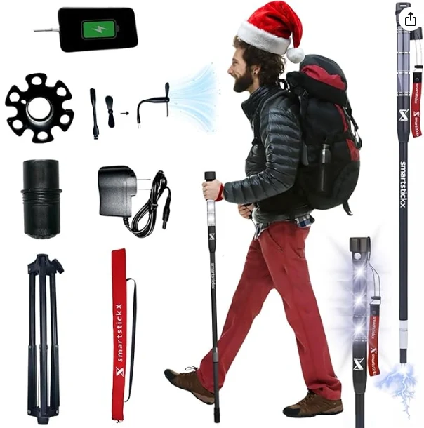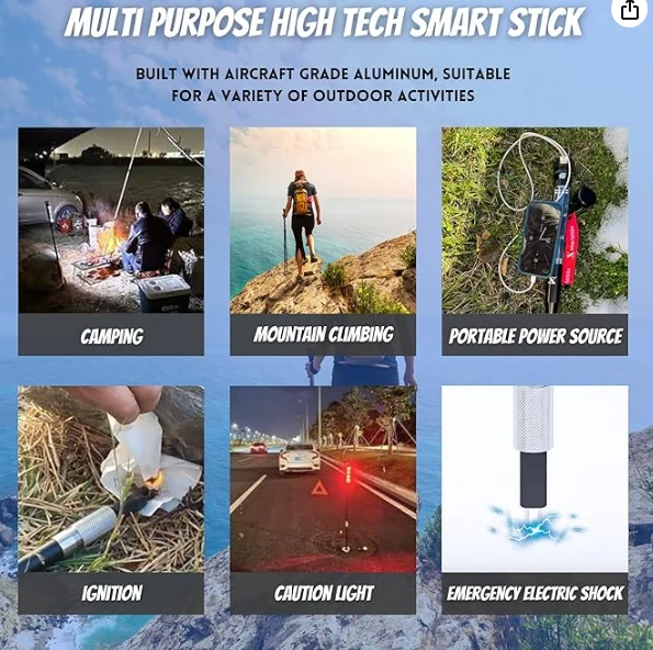 قطب کوهنوردی LED LED. PREMIUM PLATEL POLE TREKKING قطب برای پیاده روی ، بقاء بقا و دفاع از خود برای هرگونه فعالیت خطرناک در فضای باز.