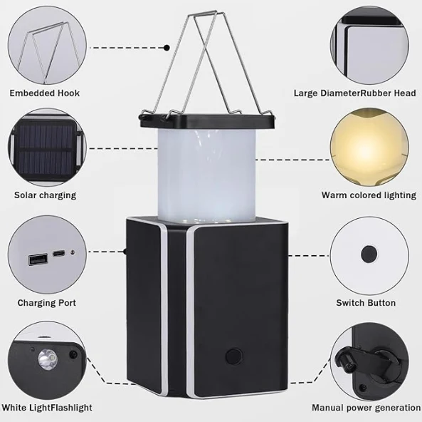 IPX4 ، چراغ های اضطراری تولید برق با لکنت ، عملکرد انرژی موبایل به منبع تغذیه تلفن همراه ، چراغ های اضطراری ، چراغ قوه ، چراغ های هشدار دهنده SOS. ، فانوس کمپینگ اضطراری قابل شارژ LED خورشیدی ، شارژ مجدد خورشیدی ، نوع C قابل شارژ ،