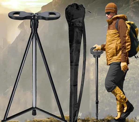 پیرمرد چوب در حال راه رفتن ، چوب پیاده روی تاشو با صندلی در هنگام پیاده روی بادوام است و ضمن حمایت از وزن کامل بدن ، انعطاف پذیری را فراهم می کند.