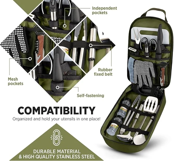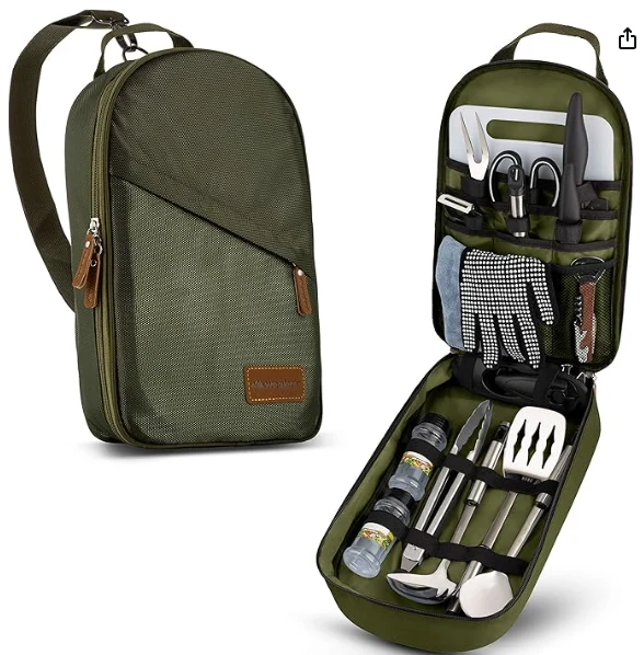 کیسه ابزار کمپینگ قابل حمل در فضای باز ، هر ظروف دارای کیسه مشخص خود هستند ، بنابراین واحدها در ذخیره سازی یا حمل و نقل یا در حمل و نقل لکه دار ، خراشیده یا آسیب نمی شوند. دسترسی آسان به وسایل آشپزی شما را فراهم می کند و مجهز به مهر و موم زیپ ایمن است